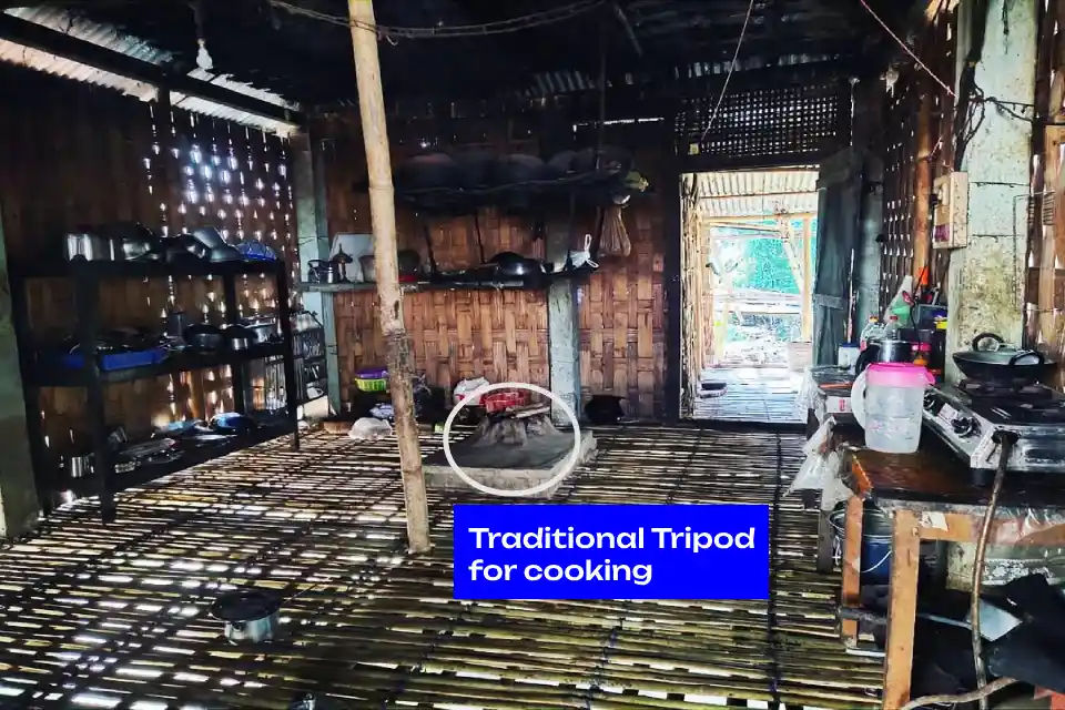 Because bamboo is lightweight, flexible, and abundant in Assam’s forests, it is utilized to construct the majority of the Chang Ghar, including the walls and floor. Thatch is used to make roofs. For better ventilation, the bamboo floors and walls are perforated.