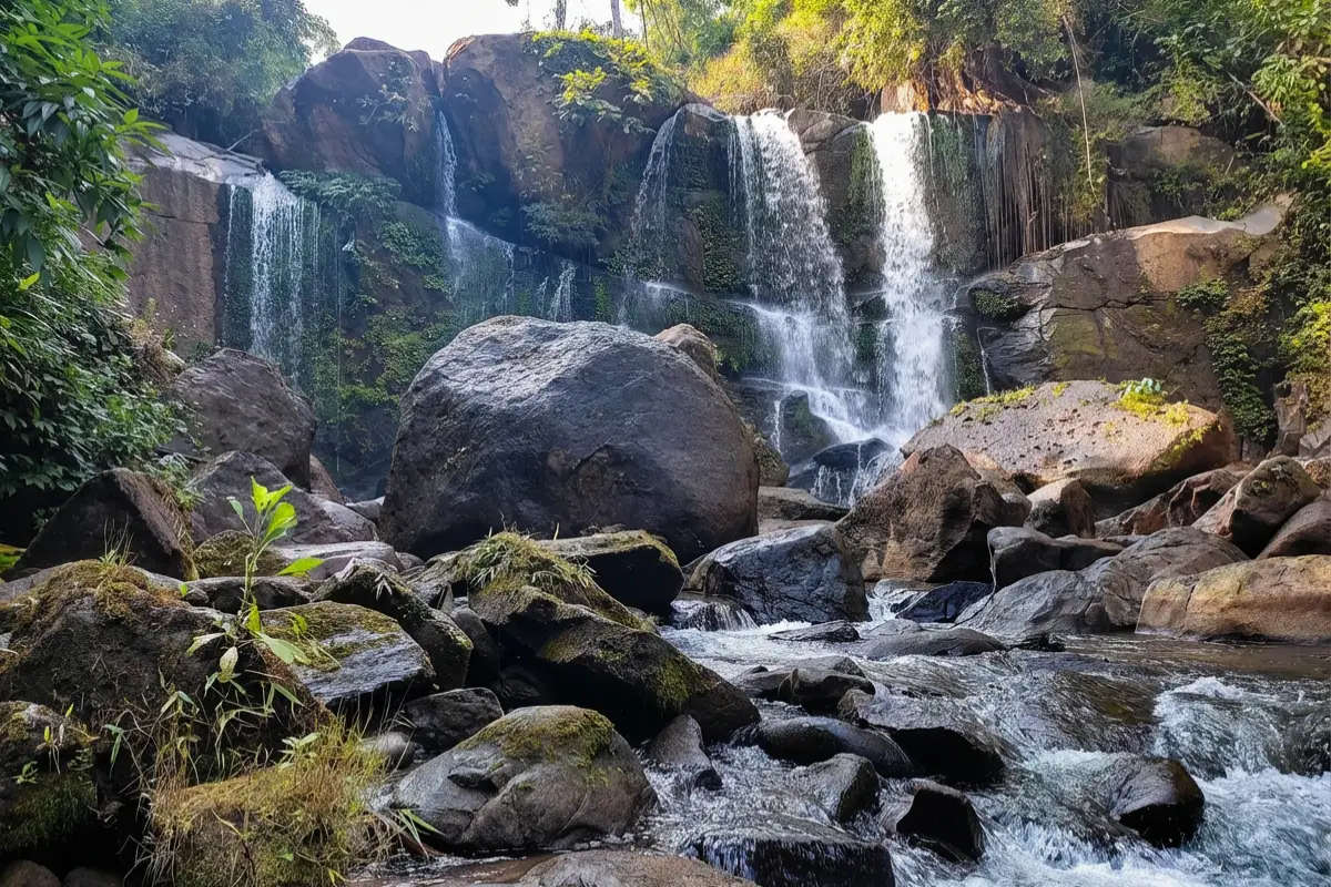 The waterfall is surrounded by tall green trees and scattered rocks all around. This brings freshness and elegance to the surroundings. When the sun shines through the leaves, the running water shines like silver or diamonds in the daylight. You can sit on the rocks and feel the refreshing atmosphere, admiring the calm rhythm of nature's flow. The untouched splendor of the Balwa Warri Waterfalls will stay with you long after the trip ends.